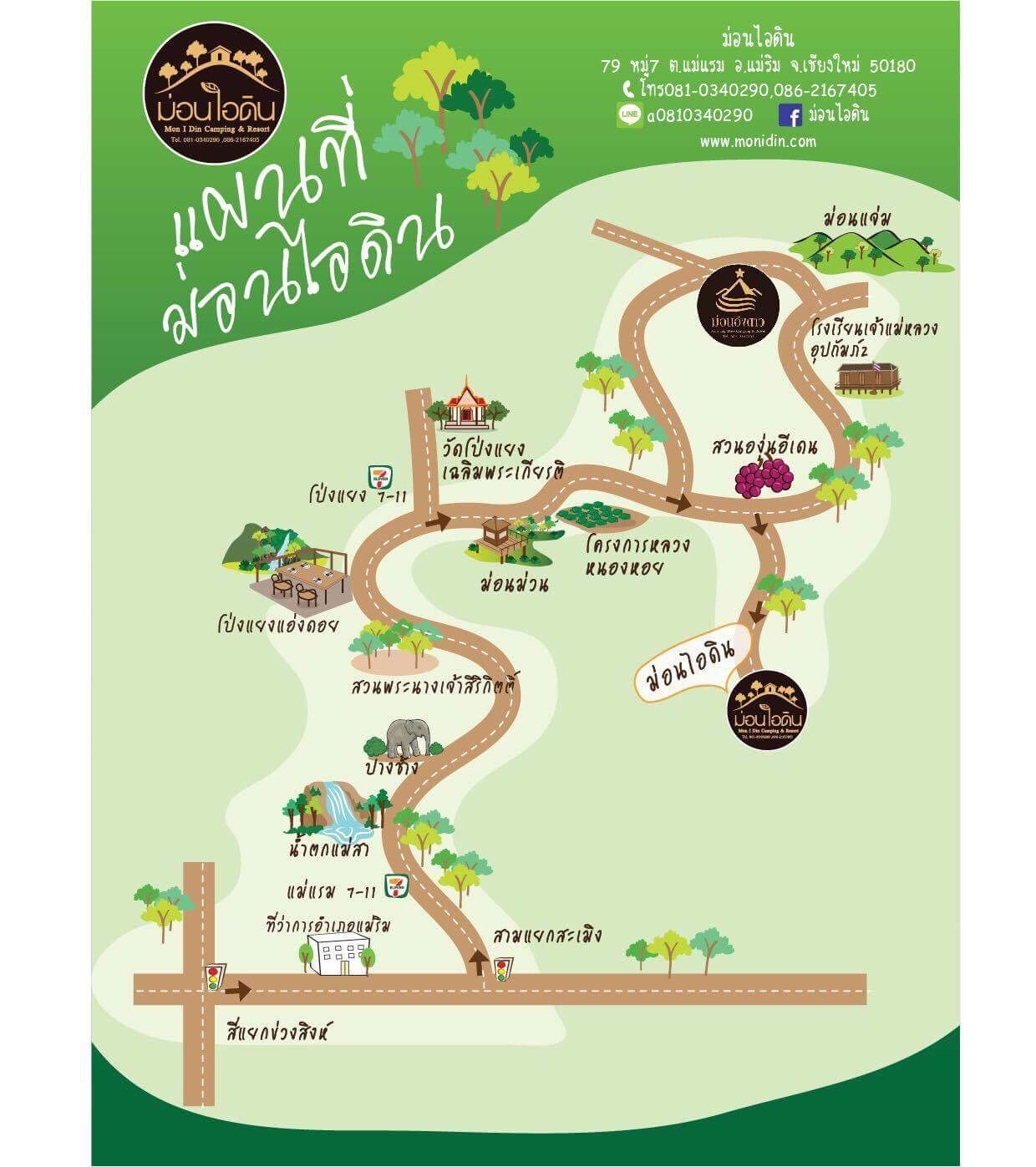 1. การเดินทางโดยรถส่วนตัว จากตัวเมืองเชียงใหม่ถึงที่พักประมาณ 50 กม.ใช้เวลาเดินทางประมาณ หนึ่งชั่วโมงกว่า (สามารถเช่ารถยนต์วันละ 800-1200/วัน หรือเช่ามอไซค์250-300/วัน จากตัวเมืองเชียงใหม่)